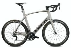 A carbon frame aero bike with ultra high-end components and rim brakes, priced near the middle of the Madone model range.